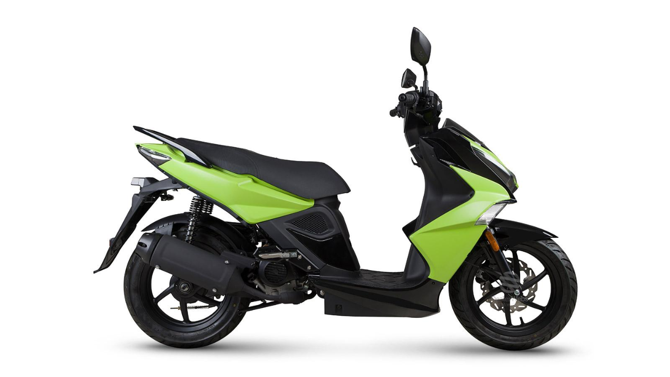 This stylish 50cc boasts LED headlights, new cool modern colours and sports decal aesthetics, a muscular and aggressive stance and 14-inch alloy wheels.  Its large flat floor offers riders a pleasant and convenient step through access for easy boarding.